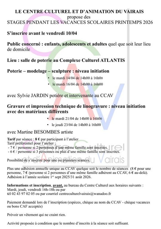 Nouveaux horaires du secrétariat dans la rubrique "Réservations"