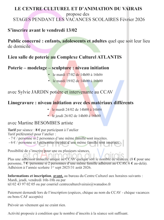 Stages vacances ~ Février 2026